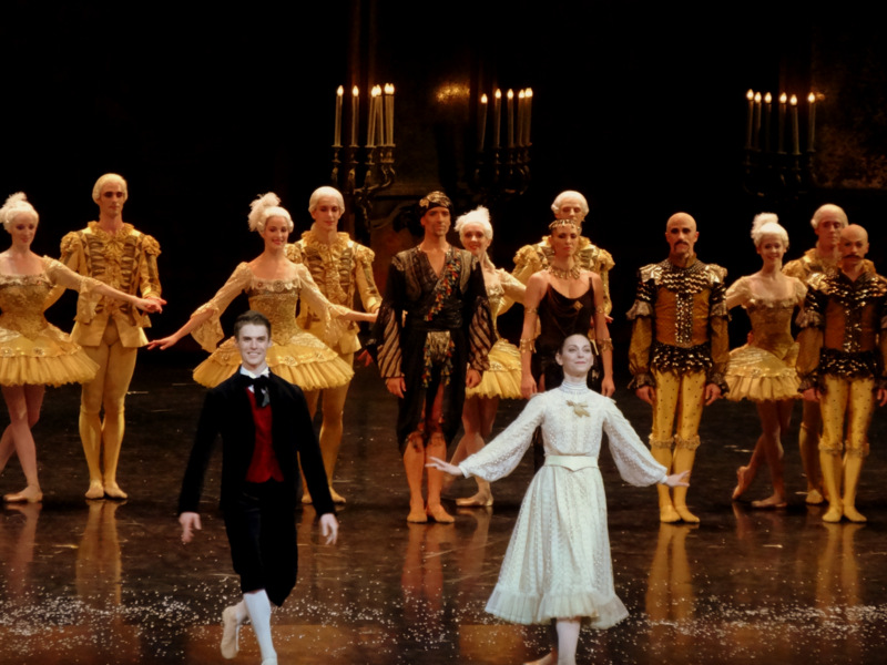 La cohérence n’est pas forcément de mise dans le 2ème acte, bout à bout de bribes de rêve issues de l’imagination fiévreuse d’une jeune fille. Entre les séquences horrifiques où les convives se transforment en chauve-souris et les divertissements dansés, prétextes à des morceaux de bravoure chorégraphiques, un peu chargés, tels que les aime Noureev, le rythme s’est nettement accéléré. Je retiendrai particulièrement la danse arabe, à la sensibilité très néo-classique, interprétée avec beaucoup de sensualité par Stéphanie Romberg et Yann Chailloux, et la merveilleuse pastorale Grand Siècle où Florimond Lorieux, entouré d’Aubane Philbert et de Lydie Vareilhes, fait une démonstration de grand style classique.