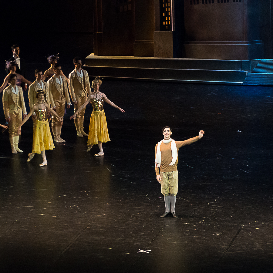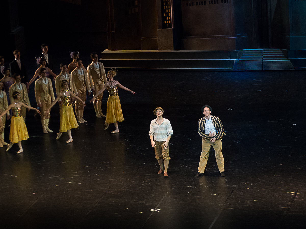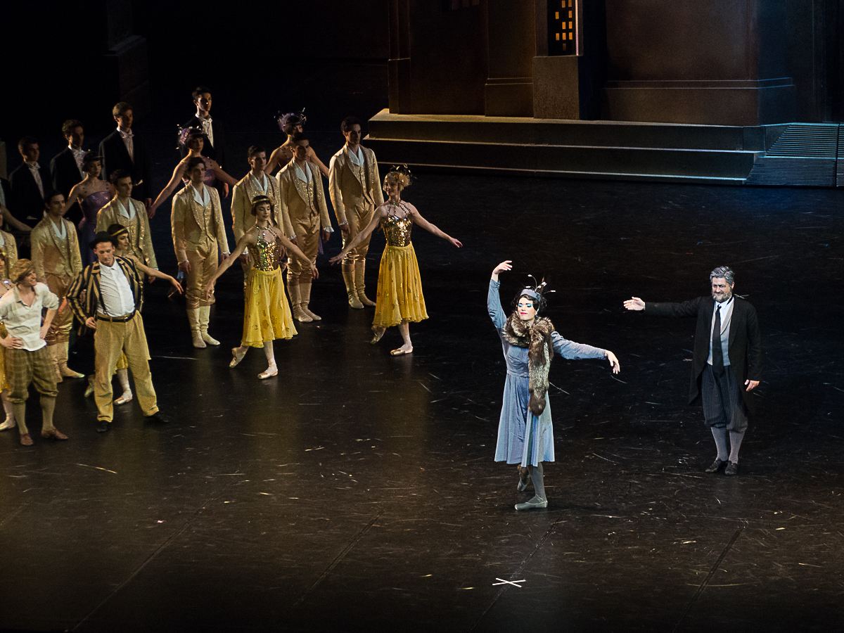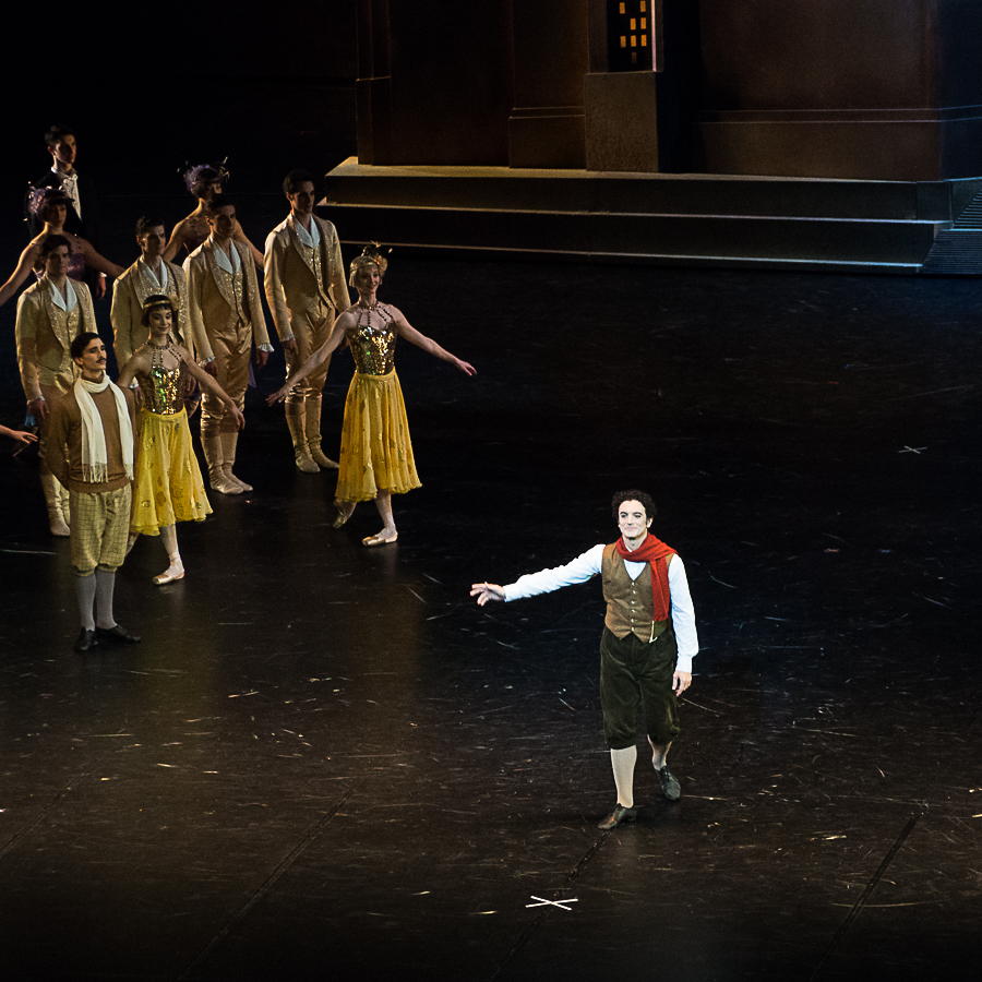 Ludmila Pagliero était la star de la matinée du 2 décembre, charmante, musicale, déjouant tous les pièges de la chorégraphie de Noureev avec une facilité désarmante, à l’aise dans la comédie comme dans la romance. Germain Louvet s’est taillé un beau succès personnel avec les variations de son Acteur-Vedette, un rôle qui lui va comme un gant à ce stade de sa carrière. L’alchimie avec Ludmila Pagliero fonctionne parfaitement : Noureev chorégraphie ici des pas de deux néo-classiques qui ne s’apparentent pas à des exercices acrobatiques et à une démonstration de force du danseur. Les deux sont entourés, comme dans tout bon film qui se respecte, par une galerie de seconds rôles qui cabotinent avec jubilation : Hugo Vigliotti, facétieux assistant du metteur en scène Matthieu Botto, Pablo Legasa, professeur de danse, qui remplacerait bien la star dans son pas de deux avec l’Acteur-Vedette, Alexandre Gasse, méconnaissable en marâtre, et surtout les deux demi-sœurs hilarantes, Emilie Cozette et Ida Viikinkoski. Il y a même les intermèdes musicaux avec le défilé de mode des saisons et leur quatuor de mannequins vedettes (Charline Giezendanner, Marion Barbeau, Sae Eun Park et Fanny Gorse) dans un exercice de pastiche de Balanchine.