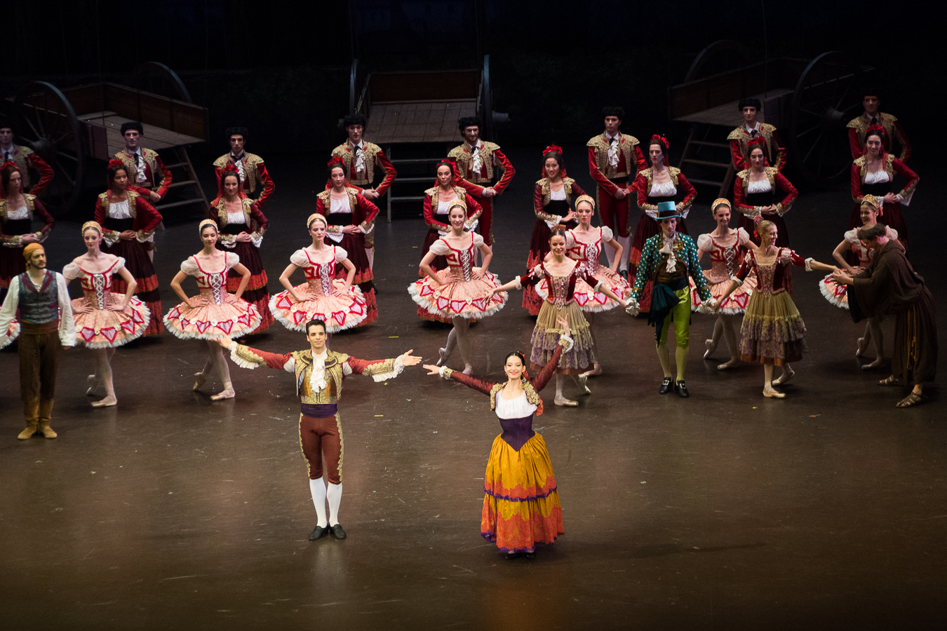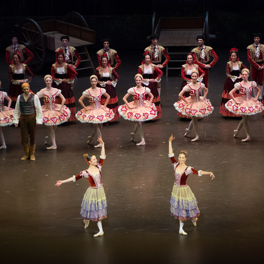Les premiers danseurs excellents sont distribués de façon ad hoc. La soirée du 15 décembre, j’ai adoré le toréador de Florian Magnenet qui avait retrouvé l’éclat de la fin de l’ère Brigitte Lefèvre (où il était distribué comme une étoile). L’association avec la danseuse de rue incarnée par Hannah O’Neill fait mouche, notamment dans le fandango du 3ème acte, que je ne me rappelais pas si sensuel. Le 15, Valentine Colasante brillait dans la variation de la Demoiselle d’Honneur, et revêtait, le 17, le costume de la danseuse de rue aux côtés d’un Audric Bezard dans son emploi type du bel hidalgo.