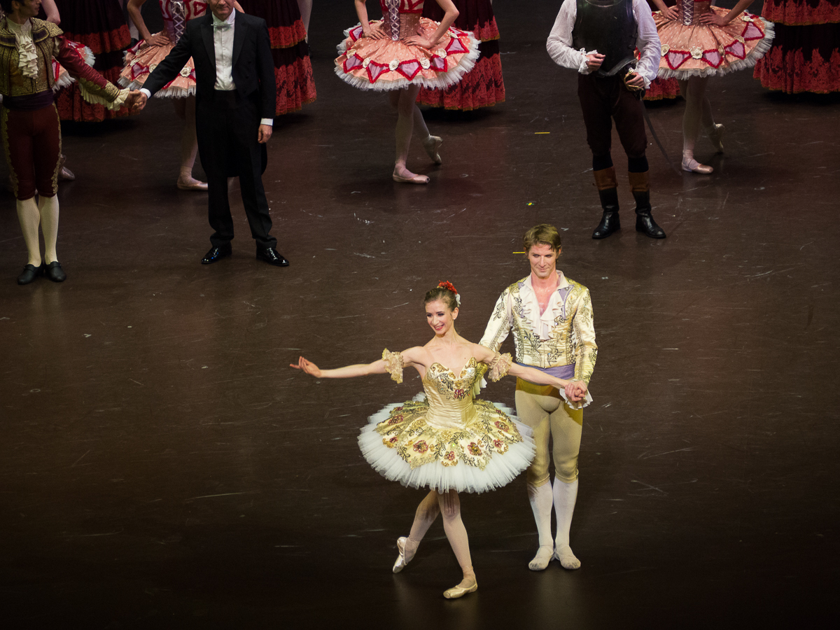 Ludmila Pagliero apporte quelque chose de différent à sa Kitri. Plus volontaire, plus explosive. C’est elle qui mène tout son petit monde à la baguette. Mathias Heymann est dans un rôle de demi – caractère qui lui convient finalement presque mieux que les princes en proie au spleen. Et il fait preuve d’une assurance dans la comédie qui fait plaisir à voir. Tous les deux semblent se jouer des difficultés de la chorégraphie, et le partenariat, souvent considéré comme le point faible de Mathias Heymann, est tout simplement parfait (qu’ils sont spectaculaires, ces portés à une main !). Ludmila Pagliero m’émeut systématiquement dans les actes blancs et elle ne fait pas exception à la règle ici. Elle était déjà superbe il y a 5 ans : elle semble avoir mûri et encore perfectionné son art. Avec son partenaire, ils délivrent une des performances les plus accomplies que j’ai pu voir ces dernières saisons. Dommage que la chorégraphie de la grande variation de Basilio au dernier acte ne soit pas un peu plus musicale. L’insertion de pirouettes entre les 4 tours arabesques assortis de changements de direction fait mal aux yeux : si Karl Paquette y était très à la peine, Mathias Heymann, pourtant doté de moyens techniques bien supérieurs et d’une facilité innée à danser le Noureev, fait ressortir les faiblesses de cette chorégraphie tarabiscotée.