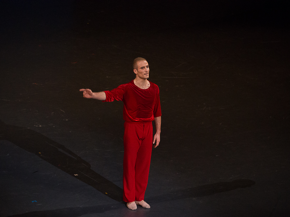 Justement, la deuxième œuvre de la soirée, le court solo A Suite of Dances, pièce tardive de Jerome Robbins, créée en 1994 pour le génial Mikhaïl Barychnikov, est peut-être la quintessence de ce style néoclassique mâtiné de décontraction américaine. L’association de Bach ( ici les 6 Suites pour Violoncelle) et Robbins, ce n’est pas forcément ma tasse de thé : les Variations Goldberg me semblent interminables et A Suite of Dances dansé par Anthony Huxley, une des étoiles du New York City Ballet, aux derniers Étés de la Danse, m’avaient laissée de marbre. Ce soir, miracle, c’était fascinant de bout en bout, même avec le bout de scène où était installée la violoncelliste dans mon angle mort. François Alu vit intensément ce portrait en mouvement d’un homme qui danse et qui doute, un portrait que j’ai ressenti également comme un autoportrait du danseur. Moins d’esbroufe virtuose, plus de sobriété et d’intériorisation, un François Alu nouveau est arrivé et cela s’annonce passionnant.