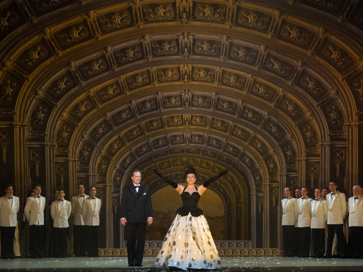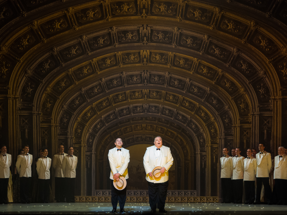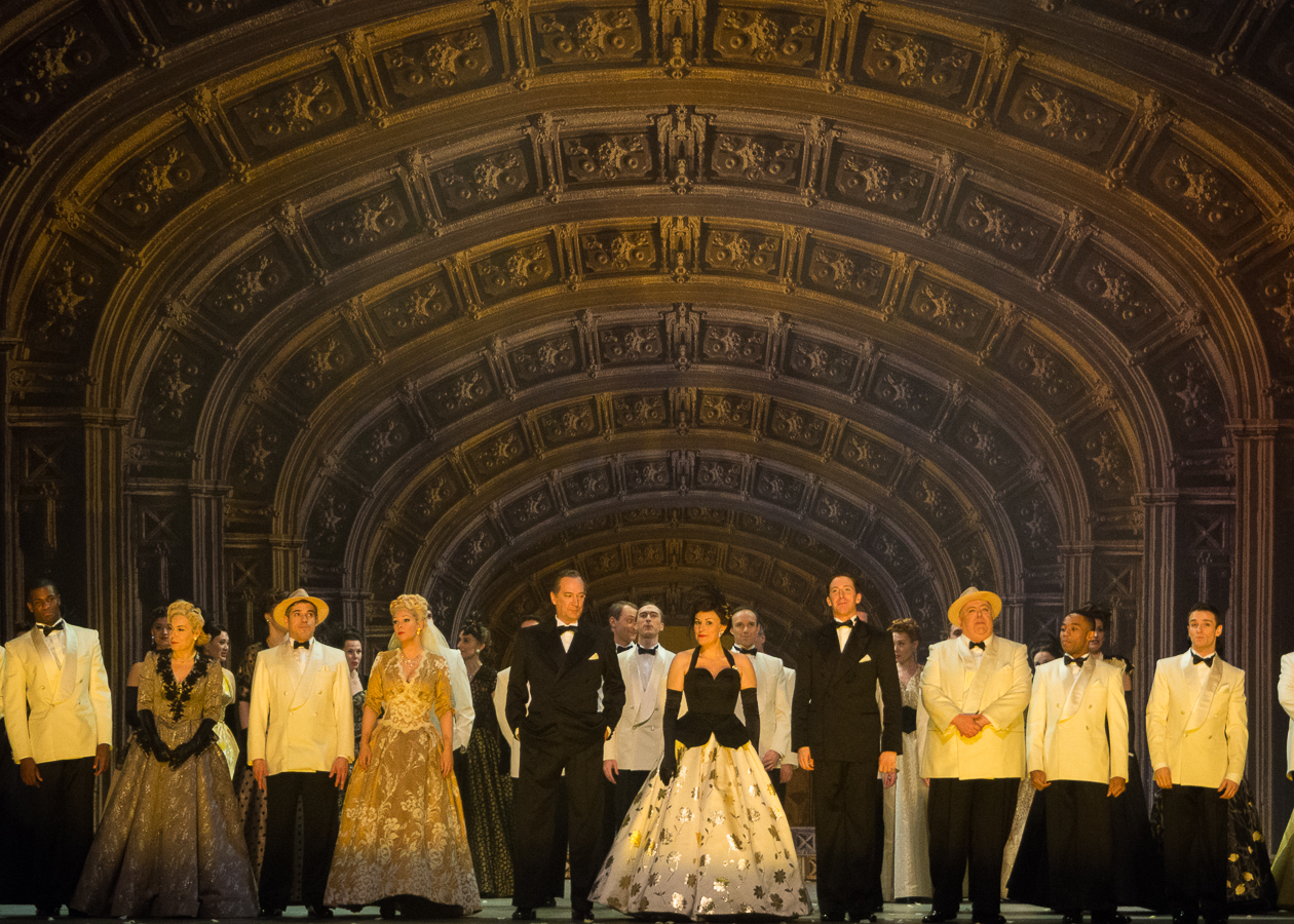 Si l’on veut chipoter, on dira que les scènes de boulevard / vaudeville réunissant Fred, Lily et son richissime fiancé Harrison sont les temps faibles du show, car leur rythme et leurs dialogues paraissent ternes à côté de ceux de la vraie Mégère qui, dans la bouche de Christine Buffle et de David Pittsinger sonnent d’une façon étonnamment musicale. Les jeux de mots nombreux dans les répliques du barde de Stratford trouvent un écho dans l’inventivité et l’esprit des paroles des chansons composées par Cole Porter. Les numéros dansés et chantés tels que le jazzy et sensuel « Too Darn Hot » mettant en scène la pause des artistes sur les toits du théâtre qui introduit le 2ème acte ou encore l’hymne à l’amour de la starlette de Broadway, « Always True To You In My Fashion », où Francesca Jackson prend de faux airs de Marylin, insufflent une énergie contagieuse.