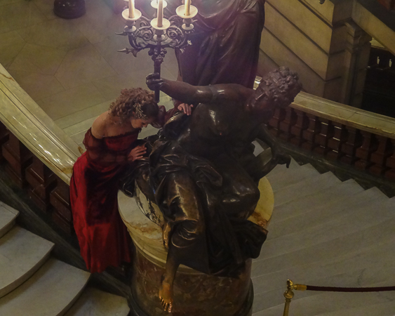Je suis ressortie de cette soirée avec le sentiment que les moyens conséquents mis à la disposition de José Martinez et de son équipe créatrice lui ont permis de mettre en oeuvre toutes ses idées, peut-être trop justement, au détriment de l’efficacité dramatique de son oeuvre. Pour reprendre des propos de Marcel Carné, « la virtuosité de la caméra, c’est bien souvent au détriment de l’histoire, et surtout des acteurs. » Il reste néanmoins, pour les visiteurs de passage à l’Opéra Garnier le souvenir d’une expérience théâtrale originale à raconter sur une carte postale de voyage.