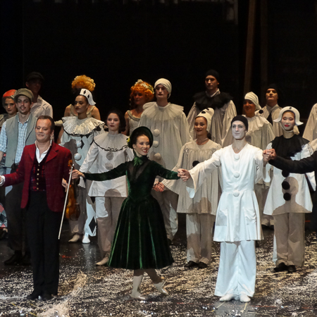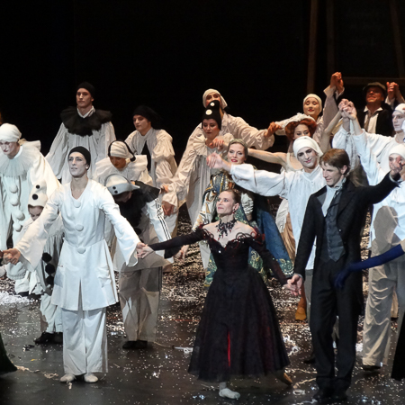 Laetitia Pujol danse merveilleusement, mais il aurait sans doute fallu une séductrice dans la veine des héroïnes de Roland Petit pour donner chair à la Garance immortalisée par Arletty, Eléonora Abbagnato par exemple. Partant de là, il devient difficile de se passionner à ce qui est pourtant le coeur de l’intrigue, la relation entre Garance et le mime Baptiste (Mathieu Ganio qui a trop peu à danser) écartelé entre cet amour fou pour une femme libre et audacieuse, qu’il n’ose complètement vivre, et l’amour apaisé qu’il porte à Nathalie (Muriel Zusperreguy). Au delà du pur plaisir de voir le pas de deux de Laetitia Pujol et Mathieu Ganio, on reste indifférent à la scène finale où, après avoir été surprise avec Baptiste par Nathalie, Garance s’enfuit, poursuivie par Baptiste désespéré.