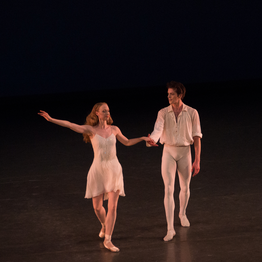 Barber Violin Concerto est un ballet que je rangerais aux côtés de La Nuit s’Achève ou Together Alone de Benjamin Millepied, des créations néo-classiques « gentillettes » dont le propos frise le vide intersidéral et qui s’appuient sur la plastique et le talent des principals pour séduire les spectateurs. Un couple de danseurs classiques (Teresa Reichlen et Russell Janzen) et un couple de danseurs contemporains (Megan Fairchild et Jared Angle) évoluent en parallèle. Les couples se défont et se recomposent pour un duo entre la ballerine et le danseur contemporain puis un duo entre le prince de ballet et la danseuse contemporaine. C’est le premier duo qui retient l’attention par le contraste entre le feu incarné par Jared Angle, superbe partenaire, et la glace, Teresa Reichlen. Le deuxième duo est un peu plus mièvre, Megan Fairchild prenant trop l’ascendant sur son partenaire un peu fade, Russell Janzen.