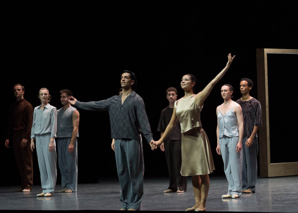 Créée en 2024 pour le Ballet de Zurich, cette entrée au répertoire propose une chorégraphie très musicale qui met en valeur les qualités et la technique des danseurs de l’Opéra, dans une classique exploration de la carte du tendre moderne. La distribution fait la part belle à toute la diversité de la troupe, à des « vétérans » (Axel Ibot, Fabien Révillion, Yvon Demol ou encore Daniel Stokes), à des artistes plutôt étiquetées contemporaines (Charlotte Ranson, Juliette Hilaire ou Sofia Rosolini), à d’autres plus classiques (Celia Drouy) et à des jeunes talents (Nathan Bisson, Corentin de Naeyer). Cela m’a fait beaucoup penser au travail de Johan Inger ou encore à Pontus Lidberg, à la fois de part la fluidité du mouvement mais aussi par la normalité du cadre : voici une danse qui dégage de l’optimisme, sans scénographie bizarre, sans ambiance apocalyptique avec des danseurs parfaitement identifiables et qui peuvent exprimer leur personnalité.