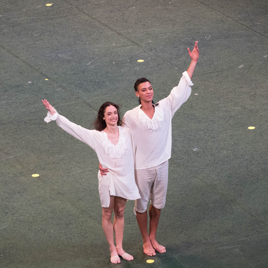 Sur un plan plus personnel, le Parc est le premier ballet « moderne » que j’ai vu, il y a environ 25 ans, et il a sans doute contribué à éveiller ma curiosité pour un répertoire moins classique. Curieusement, alors que je pensais l’avoir revu de nombreuses fois, en me replongeant dans mes archives, je me suis aperçue que ma dernière vision remontait en fait à 2014. C’est dire à quel point, cette pièce fait vraiment partie de l’inconscient du spectateur. Si dans la période COVID, elle était au programme de 2 séries annulées ou données à huis-clos, cette nouvelle reprise donne l’occasion à une nouvelle génération d’étoiles de rentrer dans la peau du séducteur et de l’amoureuse pudique. Anomalie, il aura fallu à Dorothée Gilbert attendre le crépuscule de sa carrière pour aborder ce ballet iconique, alors qu’elle a fait ces premiers pas d’étoile aux côté de Manuel Legris, l’un des premiers interprètes choisis par Angelin Prejlocaj. Pour cette série, son partenaire est Guillaume Diop.