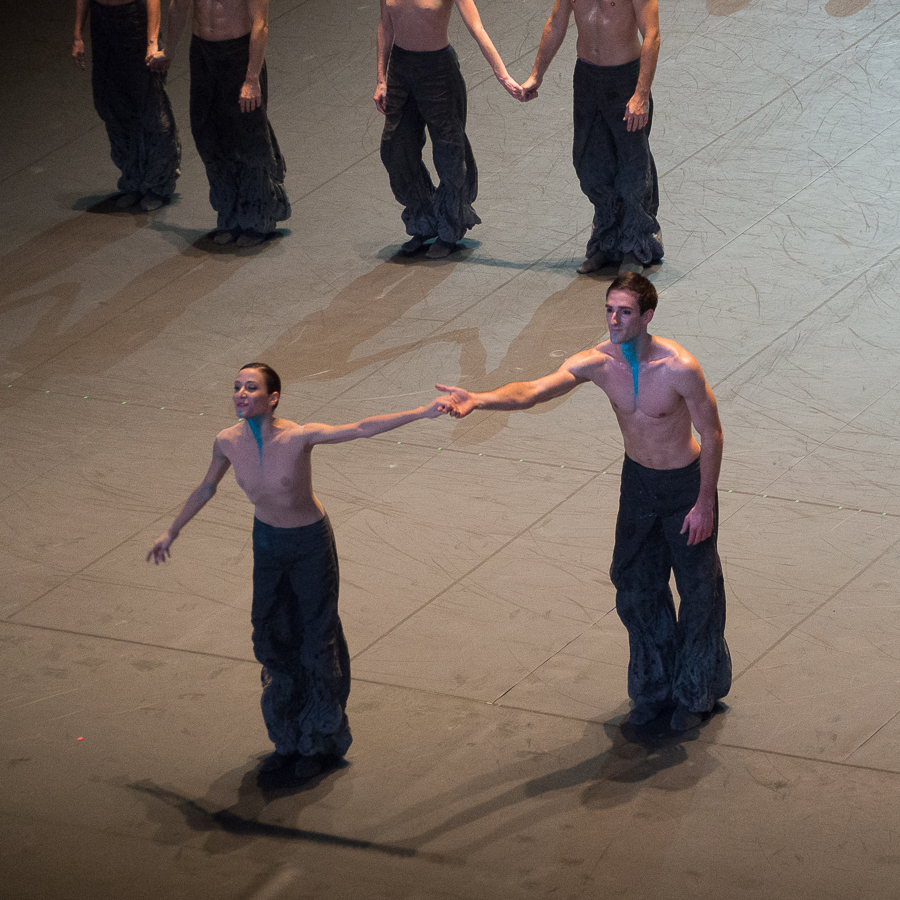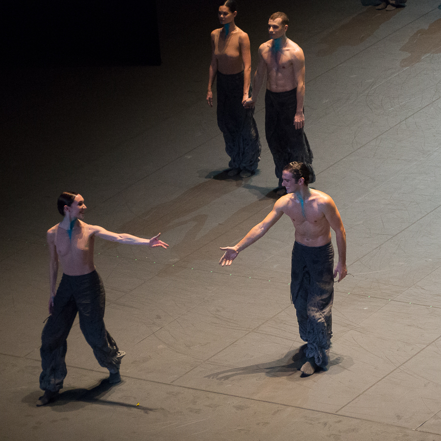 In Creases, œuvre de jeunesse de Justin Peck, pâtit de la comparaison avec la reprise de Blake Works I, le ballet électro-soul de William Forsythe qui lui succède, œuvre de la maturité que le chorégraphe américain a cousu main sur sa distribution de jeunes danseurs. On est impressionné par la fluidité et le naturel absolus de l’exécution en revoyant la pièce 3 mois à peine après sa création. Un peu comme quand on écoute plusieurs fois un album, nous allons ressentir différemment les morceaux, à la redécouverte des « pistes » chorégraphiques du travail de Forsythe, j’ai été plus sensible à la mise en valeur de la danse masculine et de l’élégance de son école française. Pablo Legasa est mon coup de cœur de la soirée : fascinant dans Put That Away, le pas de trois avec Marion Gautier de Charnacé et Caroline Osmont, brillant élément du septuor masculin majeur de Two Men Down. Chez les danseuses, Ludmila Pagliero mène indéniablement la revue, et son pas de deux avec Germain Louvet fonctionne parfaitement. François Alu est l’ovni de la bande, identifié par son costume « street wear »: le pas de deux avec Léonore Baulac, c’est un peu la rencontre de la belle et du bad boy, discret clin d’œil aux films de danse à la Sexy Dance (?).