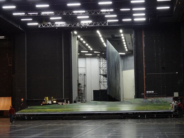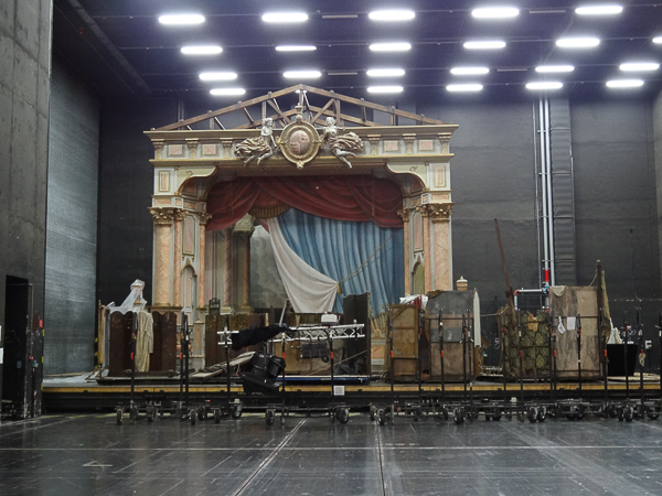 La machinerie complexe de l’Opéra Bastille permet de gérer deux spectacles en alternance et trois autres productions en répétition. Les équipes sont ainsi en train de monter les décors pour la générale du Roi Arthus de l’après-midi. Sur les côtés patientent les décors de la Flûte Enchantée et d’Adriana Lecouvreur. Nous aurons également un aperçu de certains éléments du décor de Moïse et Aaron, l’opéra d’Arnold Schönberg qui ouvrira la prochaine saison. Cette production promet d’être “space” selon les termes de notre guide.